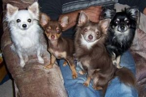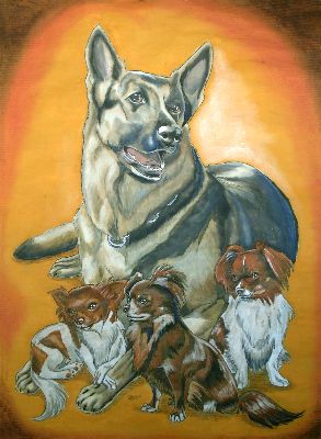 Vier schöne Chihuahuas, von links nach rechts: Felix, Balou, Bambam und Mona. Nach diesem Photo gemalt.