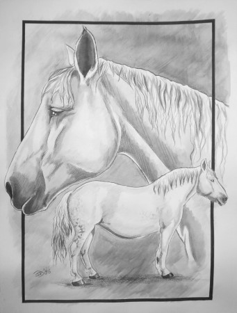 Dies hier ist Gero, das Pflegepferd meiner Trauzeugin. Für sie als Geburtstagsgeschenk gemalt, nach diesen Photovorlagen. Für eine vergrößerte Ansicht einfach aufs Bild klicken.