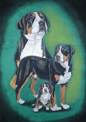 Nikita, die Hündin einer Züchterin. Gemalt nach Vorlage dieser beiden Photos.