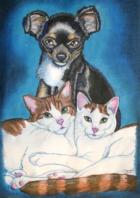 Hier ein Bild von zwei, leider schon verstorbenen, Katzen. Nach diesen Fotos gemalt.